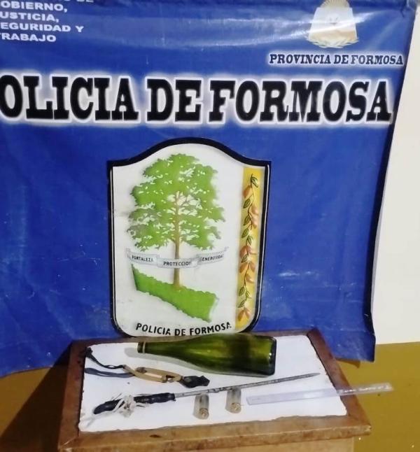 Efectivos Policiales detuvieron a un hombre y secuestraron armas blancas, botellas y una gomera, mientras que en otro hecho se identificó al autor de los daños ocasionados a un móvil policial.