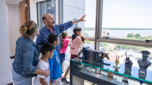La comitiva, explicó el mandatario, estaba “muy contenta de conocer lugares emblemáticos de nuestra ciudad”, como el Parque Acuático 17 de Octubre, la Costanera sobre el río Paraguay, el museo Duffard y la plaza San Martín, entre otros.