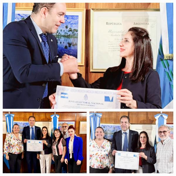 En la mañana de este miércoles 26, la Junta Electoral Nacional Distrito Formosa, de manos de su presidente el juez Federal, el doctor Pablo Morán, entregó el certificado que acredita la condición de diputada nacional electa por el Frente de la Victoria a la licenciada Graciela de la Rosa.
