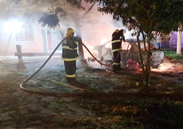 Integrantes del Cuartel Central de Bomberos comprobaron que el incendio de un automóvil Renault Logan se produjo de manera intencional.