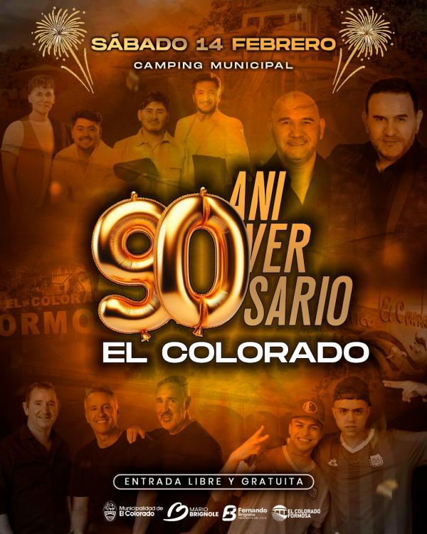 En el marco de las celebraciones por el 90° Aniversario de la localidad de El Colorado, el próximo sábado 14 de febrero se realizará un gran festival musical con entrada libre y gratuita en el camping municipal.
