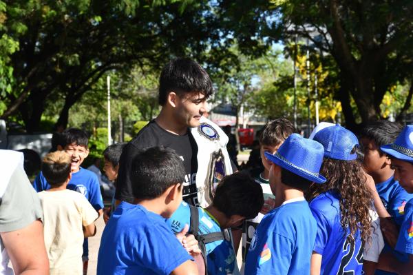 “Muchos de ellos me siguen en las redes sociales, así que me reconocieron enseguida. Para mí es muy lindo venir, compartir mi experiencia, contarles quién soy a los que no me conocen y motivarlos a que elijan el deporte”, expresó el campeón mundial en declaraciones a la Agencia de Noticias Formosa (AGENFOR).