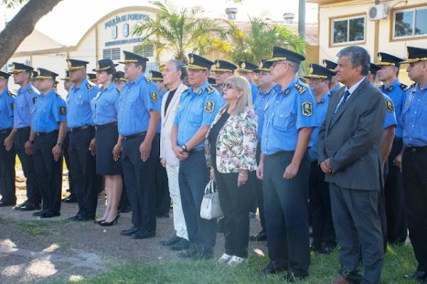 El acto fue presidido por el jefe de Policía Comisario General Juan Moisés Villagra, acompañado de la Subsecretaria de Justicia Comisario Mayor Dra. María Higinia Sena, integrantes de la plana mayor policial, oficiales superiores, jefes y subalternos.