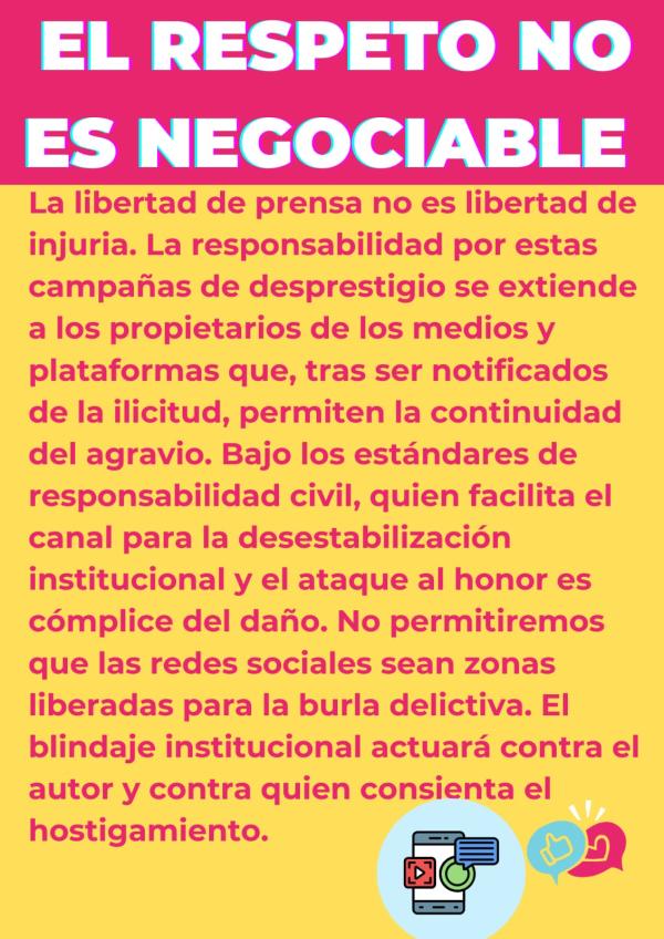 Defensa Institucional: No permitiremos que se normalice el acoso. Identificaremos y denunciaremos la violencia digital disfrazada de sátira.