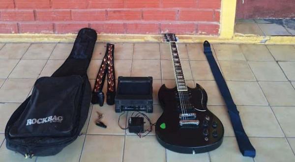 Allí, personal de la Zona Dos del comando de Patrulla de Seguridad Urbana secuestraron una guitarra eléctrica, un parlante amplificador, un afinador metálico, entre accesorios musicales.