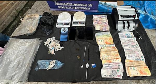 Durante la requisa, se procedió al secuestro de envoltorios con cocaína y marihuana listos para su comercialización, dos balanzas de precisión, un contador de billetes, dinero en efectivo, teléfonos celulares, además de elementos utilizados para el fraccionamiento y acondicionamiento para el consumo de sustancias.