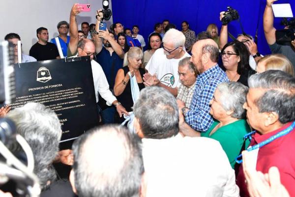 Seguidamente, en el descubrimiento de una placa recordatoria, el gobernador Insfrán estuvo acompañado por Graciela de la Rosa, Juan Eduardo Lenscak, José Saavedra, Carlos Sotelo, Nelly Daldovo, Teresa Fernández, Jorge Nielsen, Roque Giglio, Juan José y Nelly Bogarín, Víctor Giménez, Eleuteria Roa, Higinio Balderrama, así como familiares de Adriano Acosta, de Julio Andrés “Bocha” Pereira, entre otros.