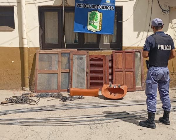 Efectivos de la Comisaría Laguna Blanca secuestraron ventanas, celosías de algarrobo, un lavatorio de cerámica, alargues y varillas de hierro.