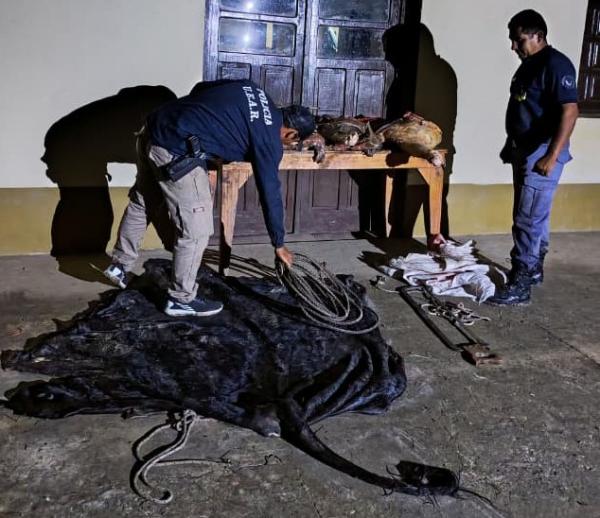 Allí se procedió al secuestro de los cortes cárnicos, un lazo, un serrucho y bolsas arpillera, constatándose que el animal había sido sustraído de un establecimiento rural de la zona.