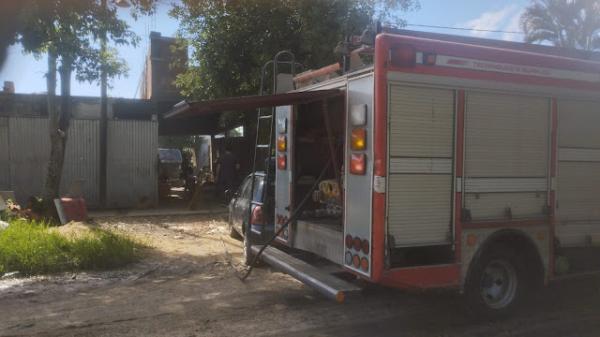 Efectivos policiales del Comando Radioeléctrico Zona Ocho, Comisaría Seccional Quinta y del Cuerpo de Bomberos intervinieron en el incendio de un taller mecánico del barrio Las Orquídeas, de la ciudad de Formosa.