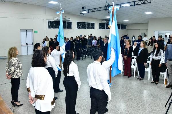 Allí funciona esta institución, en el turno noche, desde las 19 hasta las 23.50 horas, en donde fue la ceremonia de la que participaron sus autoridades, plantel docente y estudiantes, acompañándolos autoridades provinciales y de otras instituciones con asiento en la provincia, así como también se invitó a directivos de otros Institutos Superiores.
